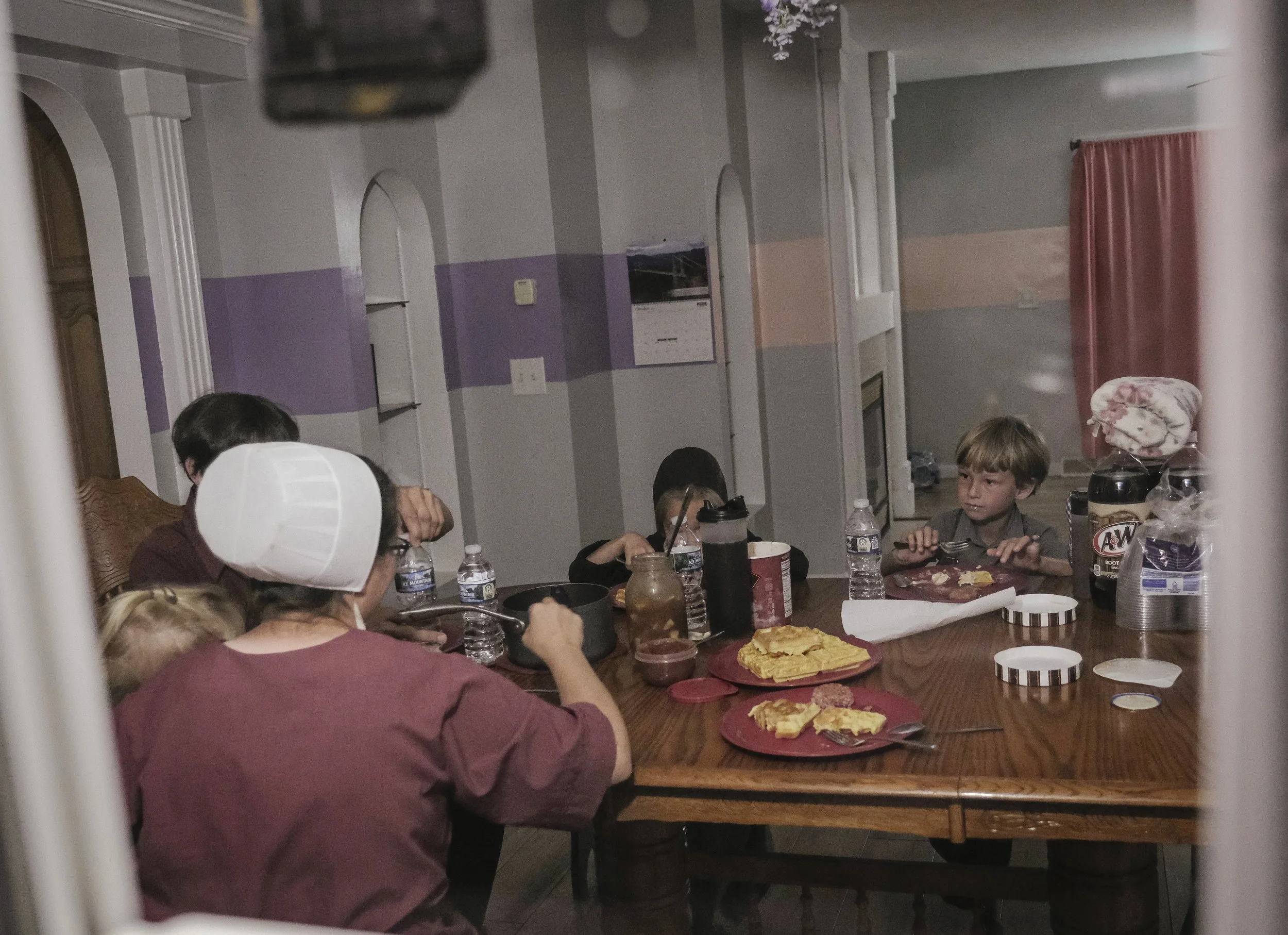 A Thursday morning for the Yoder Family might look like this— The kids are sprawled out on brown couches that circle the living room, while Sam cooks waffles in the kitchen. They got up at 5:30 before the sun so they have to plug DeWalt batteries into each light fixture, due to their lack of electricity. Each battery is charged throughout the day through the solar panels on their roof, something that is very common among Amish families. After the family indulges in a plate full of waffles and coffee ice-cream, they’ll migrate to their family room to say a morning devotion spoken in German, ending with the family kneeling on the ground with their backs turned to the middle of the room for their morning prayers. Diann and the kids will then begin cleaning the dishes from breakfast, while Sam goes into his shop to begin work for the day.