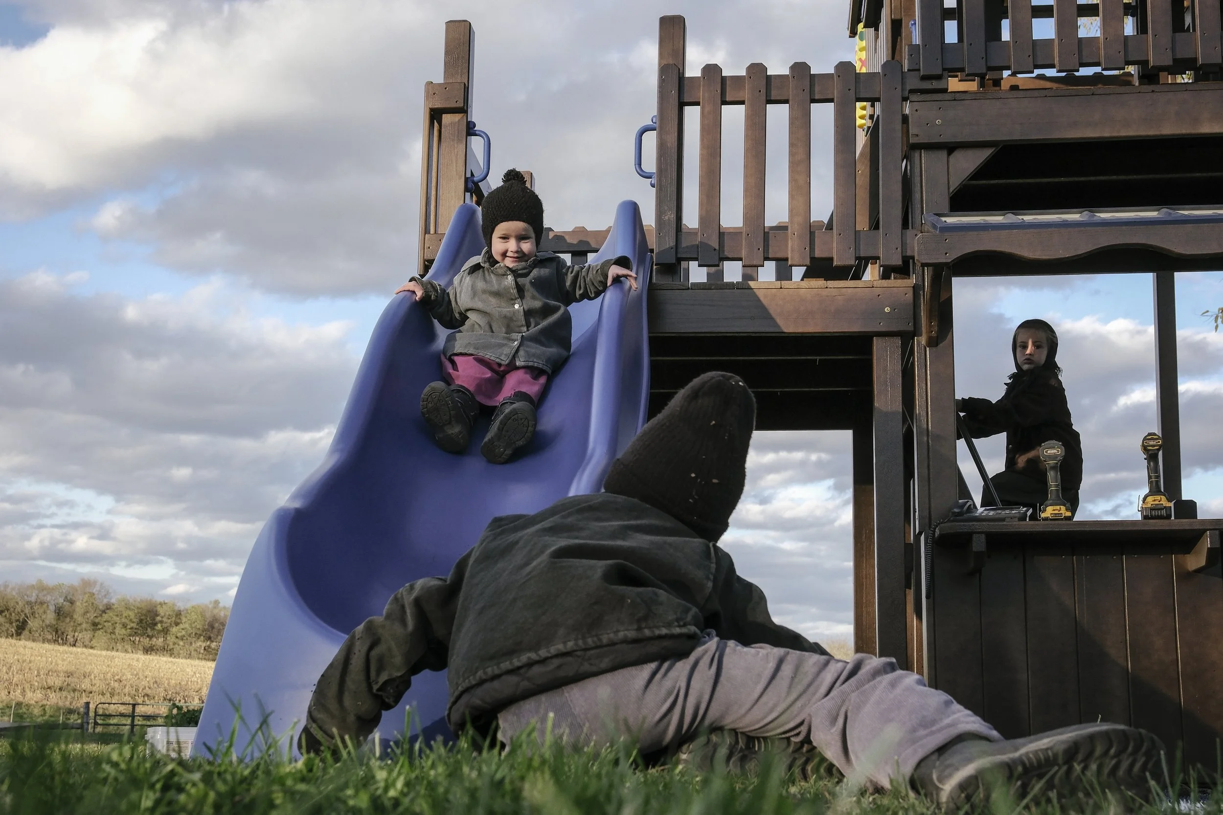 Sam had moved from Pennsylvania and met Diann, whose family had moved from Indiana. They got married in 2016 and have built a simple, yet fulfilling life, woven by their practice and testament to God. Sam, a skilled carpenter and owner of Outdoor Haven Swingsets, spends his days crafting wooden creations— swingsets that resemble boats and traditional jungle gyms for children. He also sells, installs, and fixes solar systems and freezers and is known throughout, and beyond, the Amish community through word of mouth. Sam, a gentle and loving father, still makes time for the children and his wife. “One thing I appreciate, he babysits the kids and gives me a break,” said Diann.
